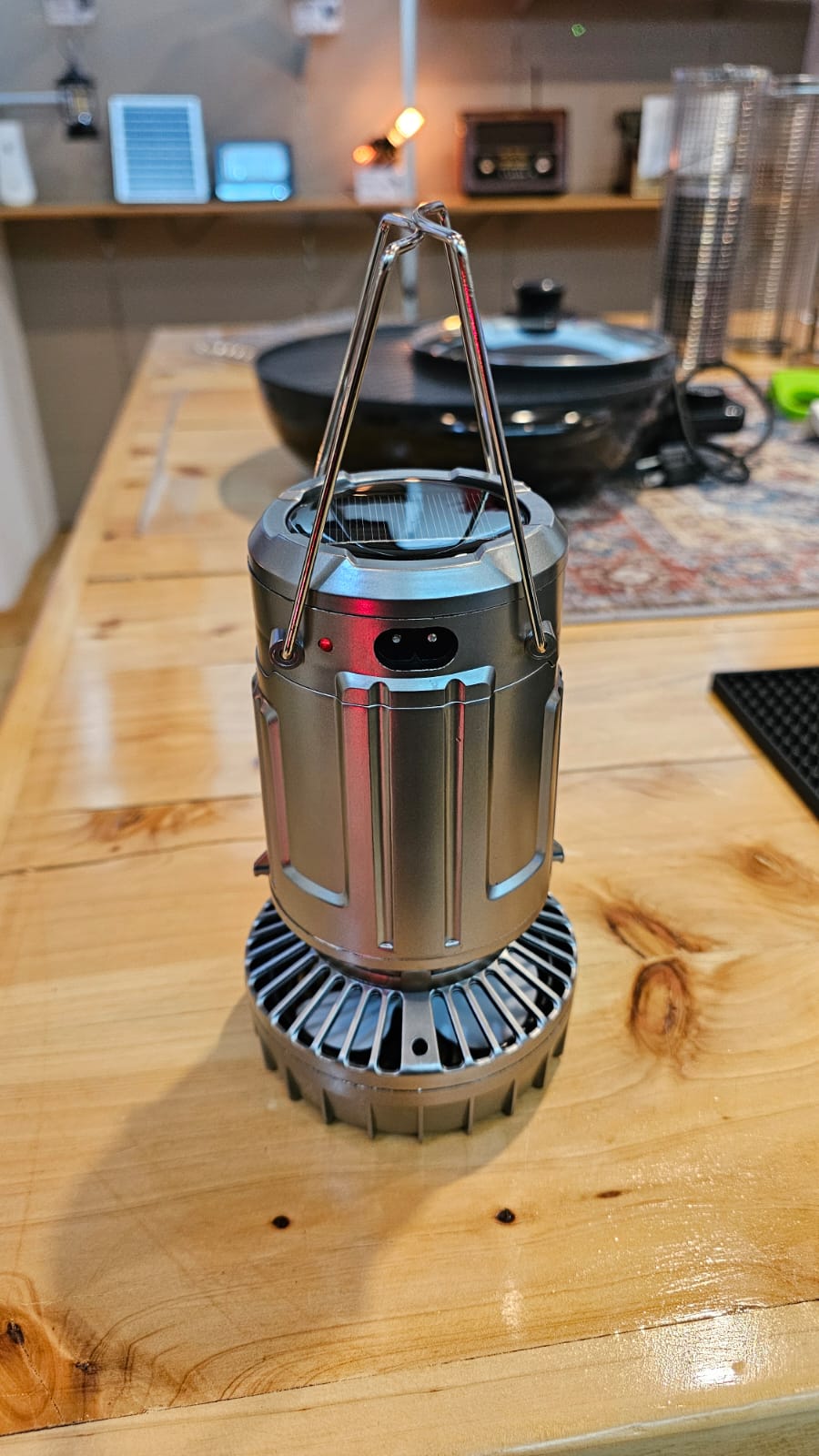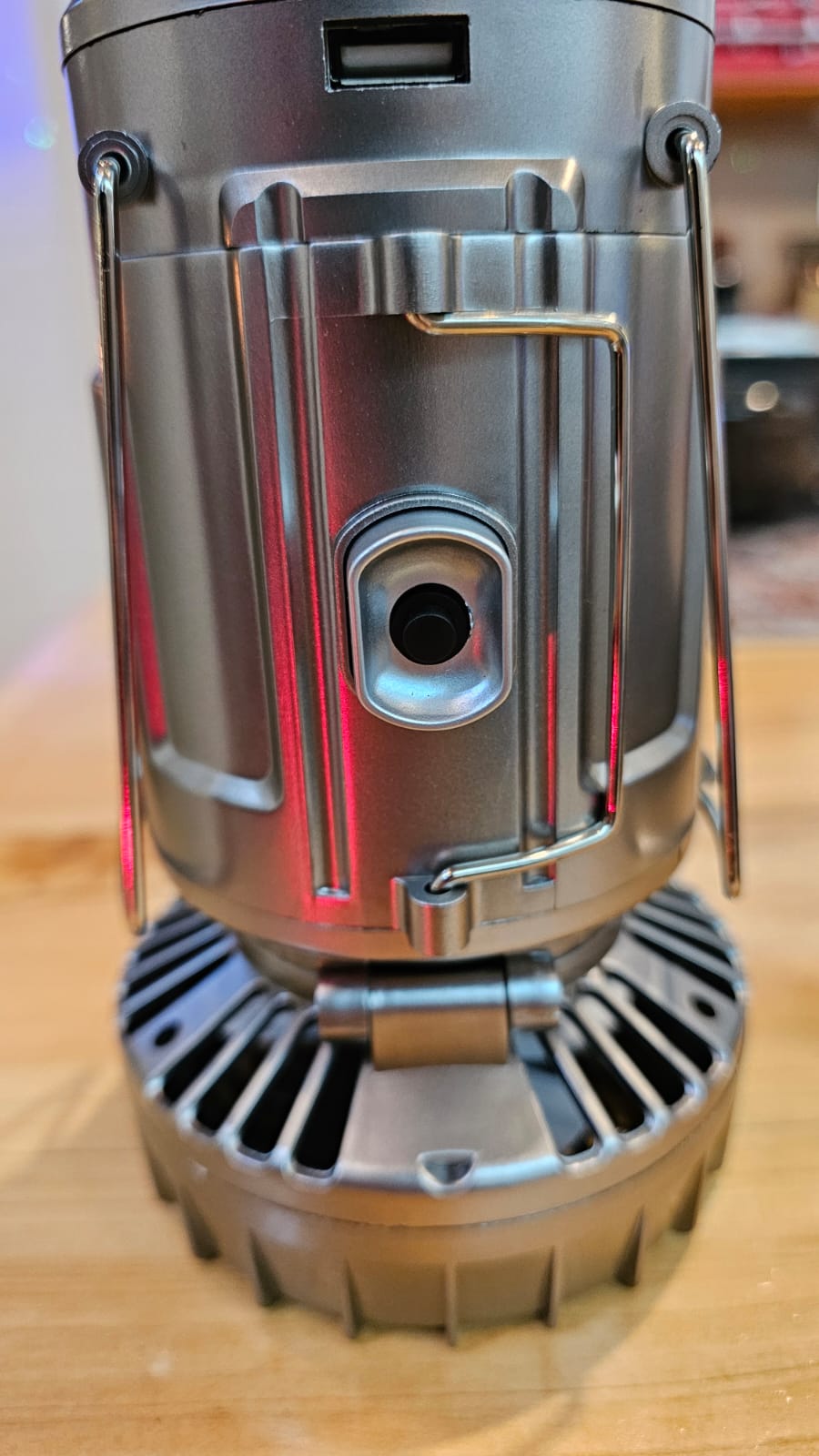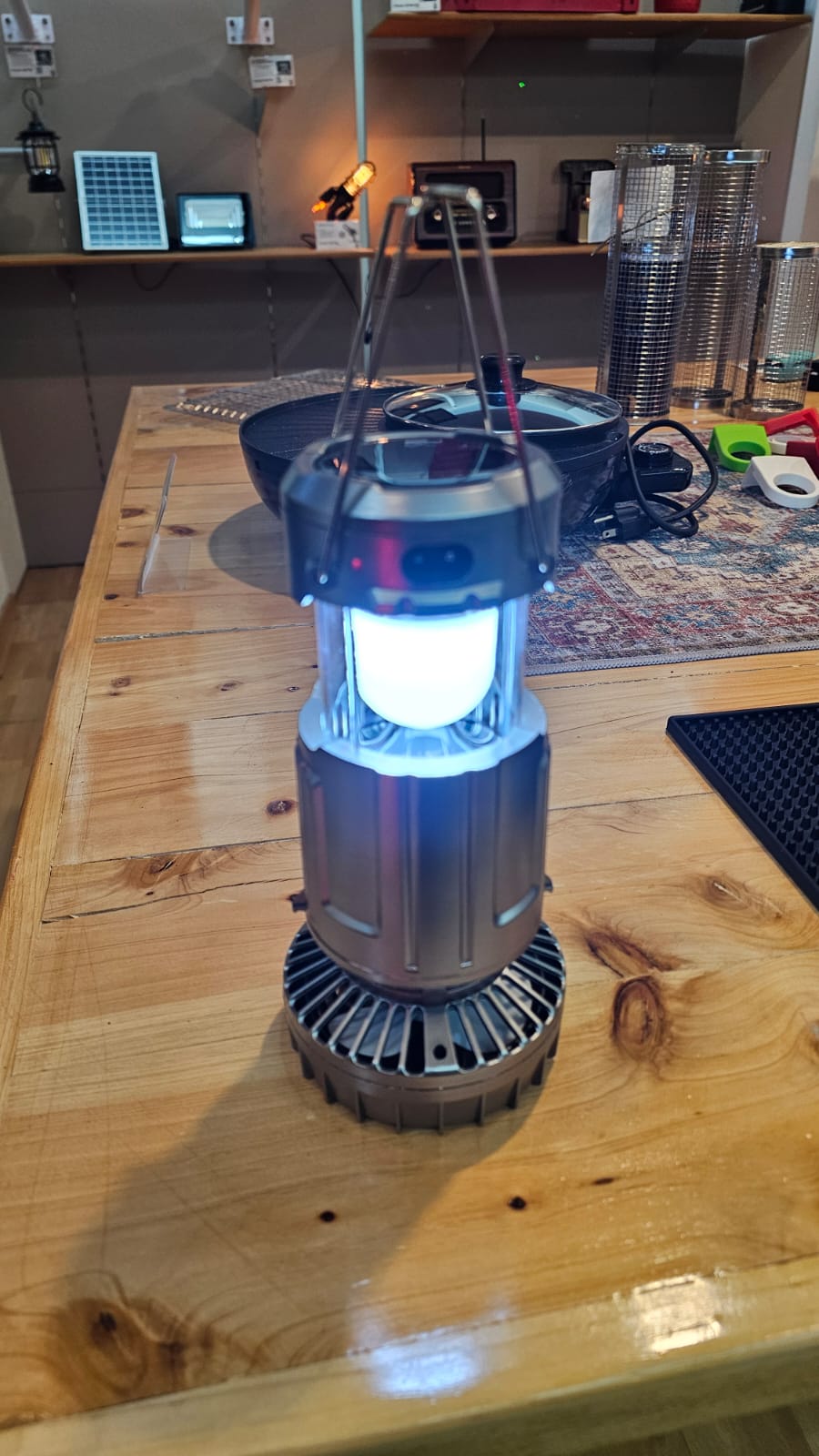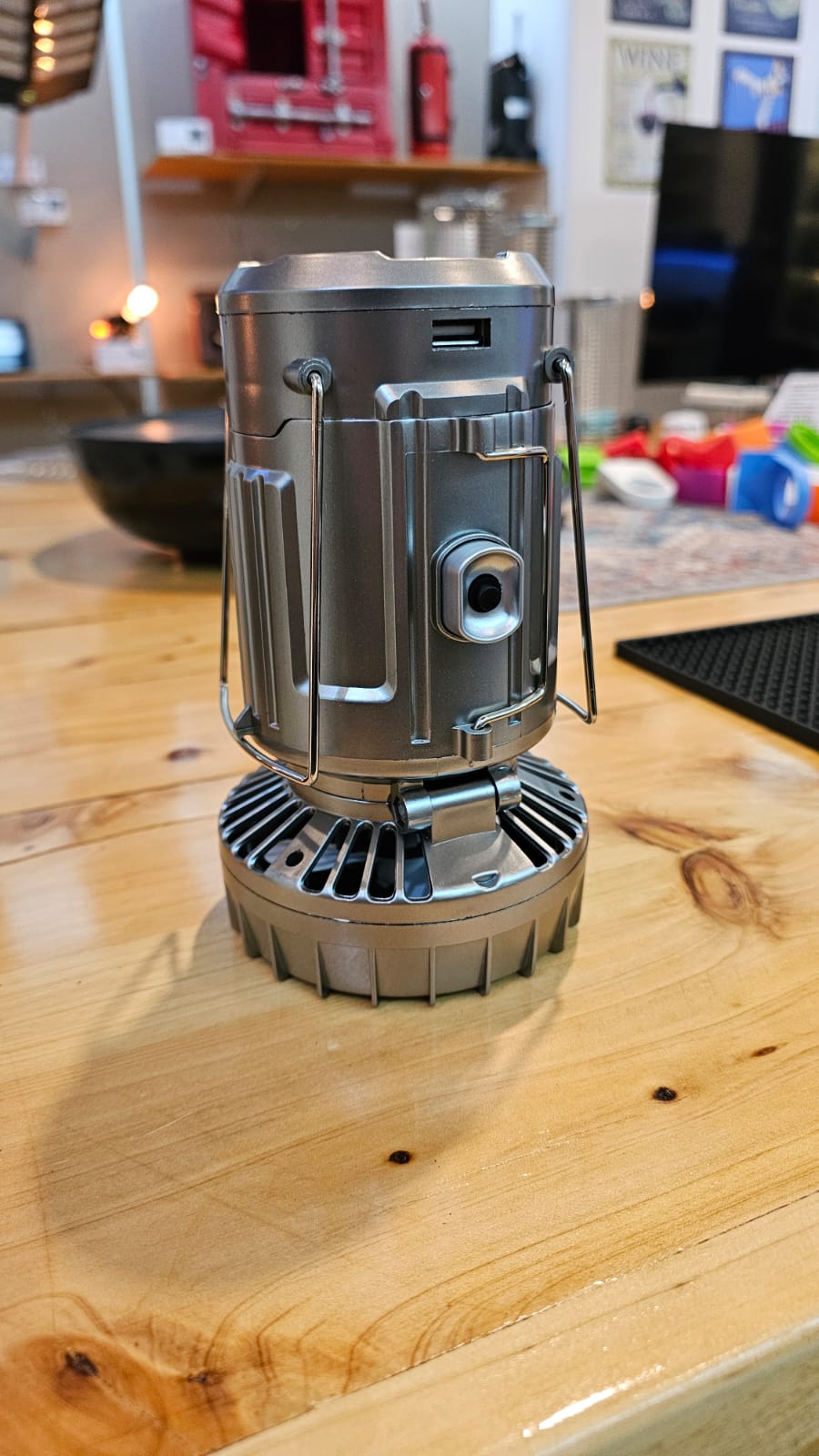 Combina funcionalidad, diseño y energía sostenible con esta elegante lámpara retro. Ideal para camping, terrazas, cortes de luz o decoración con un toque nostálgico.