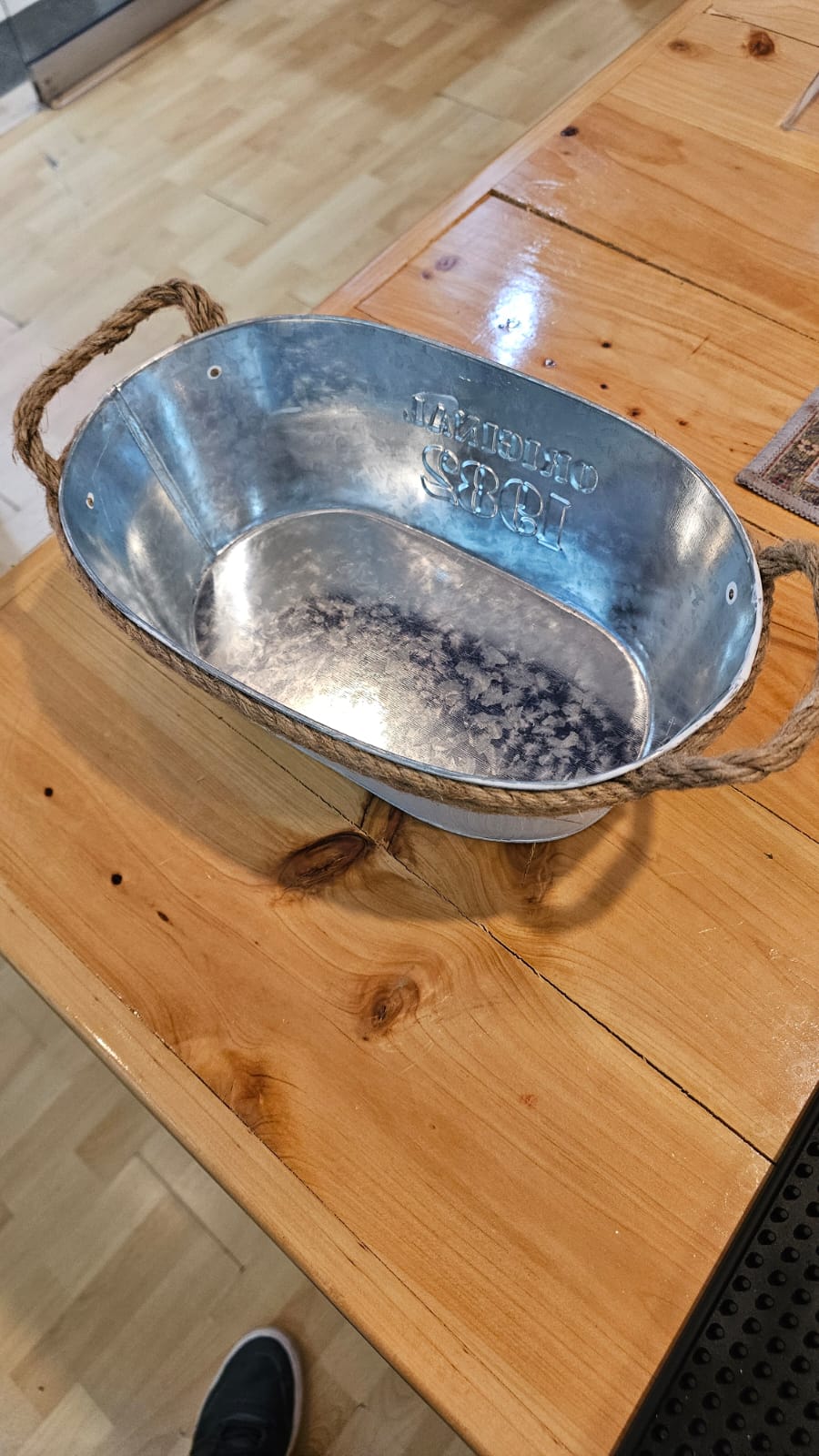 Añade un toque retro y auténtico a tus reuniones con esta elegante maseta para hielo de hierro. Su diseño vintage con la inscripción "Original 1982" la convierte en una pieza decorativa y funcional que no pasa desapercibida.
