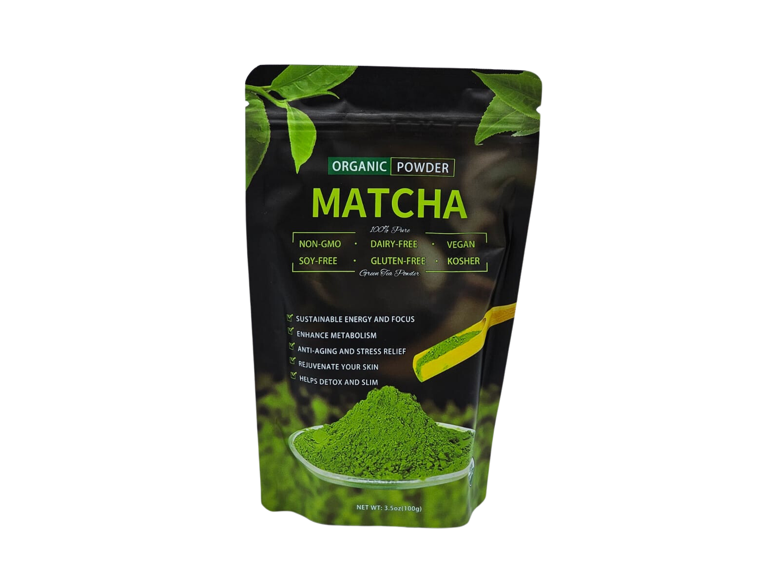 Las hojas son molidas lentamente hasta obtener un polvo ultrafino. El polvo es rico en aminoácidos, polifenoles del té, fibra, vitaminas y minerales, con un suave sabor y olor. Este polvo de matcha premium se utiliza en la dieta diaria para batidos, bebidas, lattes, postre, helado, horneando, cereales, yogurt y cualquier receta que prefieras.